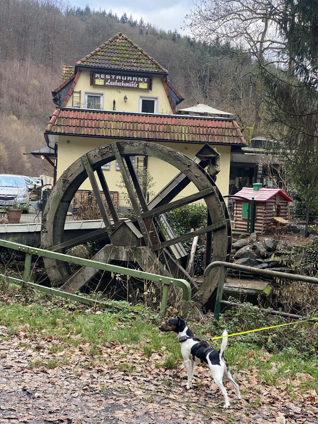 Im Anschluss kehren wir in die Laubachsmühle ein, wo ab 16 Uhr ein Tisch für uns reserviert ist. Wer möchte, kann somit seine/n Hund/e während des Essens im Auto warten lassen.