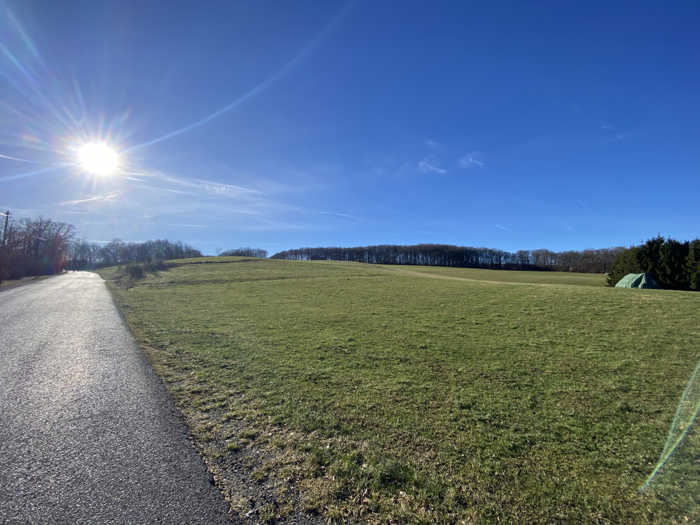 Der Geocache führte uns bergauf, bergab durch Wald und schöne Wiesen. Mal war Frühling, dann wieder Raureif und gefrorener Boden. Auch die Temperaturen schwankten auf zwei Metern um gefühlte fünf grad..